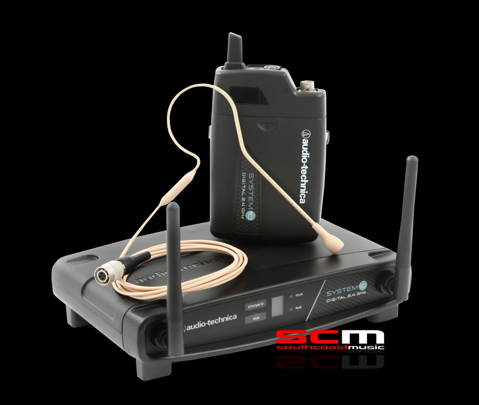 The AT SYSTEM 10 PRO92cW-TH from Audio-Technica is a digital wireless headworn microphone solution for a wide variety of situations including drummers, keyboardists, dancers, fitness instructors, public speakers, spruikers, horse and animal trainers along with others that require the use of their hands during performance.