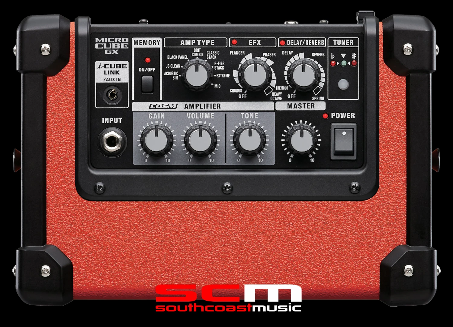 Filled with Roland’s renowned COSM amps, the MICRO CUBE GX provides tones for playing any musical style, from ultra-clean jazz to heavy rock and everything in between. The newly added EXTREME amp kicks things up a notch, giving you a massive voice for crushing, in-your-face metal riffs. There’s also a MIC setting for using the amp with a vocal microphone. Five different EFX types are available to sweeten your sound, with a new HEAVY OCTAVE effect that works great for adding unique, ultra-low power to distorted tones. An independent DELAY/REVERB processor is onboard as well, with a newly added spring reverb option for authentic surf and roots-rock sounds.
