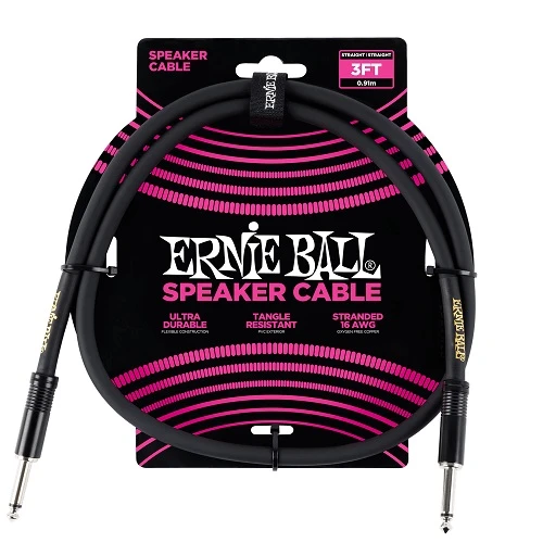 Ernie Ball speaker cables feature a high-quality design made with superior components that are built to last. The 16 gauge conductors deliver a reliably clear signal and the durable PVC jacket exterior ensures long-lasting performance. Cable length 3ft (0.91m).