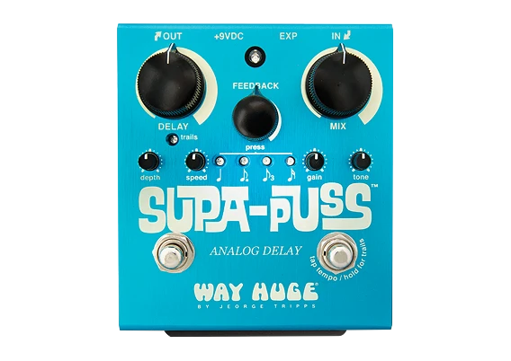 The Way Huge® Supa-Puss™ Analog Delay was designed by delay master Jeorge Tripps for exploring the farthestreaches of true analog delay potential, featuring an eternity of delay time and fine control over numerous parameters of your delay signal.
