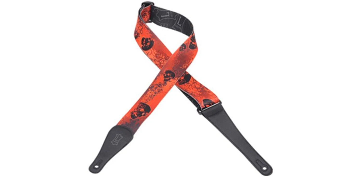2″ Sonic-Art™ polyester guitar strap featuring original artist design, with leather ends and tri-glide adjustment. Adjustable to 65″.