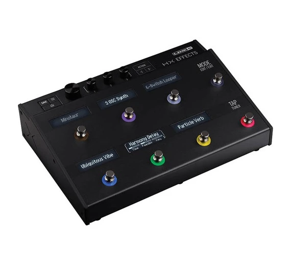 HX Effects is much more than a multi-effects pedalboard. While it can easily replace your current board into the front of your amplifier, it boasts enough I/O and control to take the lead in even the most complicated guitar rigs. Flip the HX Effects around and the first thing you’ll find is dual outputs to control channel switching on your amplifier or to add an expression pedal. Dual effects loops allow you to include your favorite stomps anywhere in the chain. MIDI I/O integrates the unit into larger setups —it is even able to integrate with your band’s MIDI-based performance. And the HX Effects’ USB capability makes computer-based editing and firmware upgrades effortless.